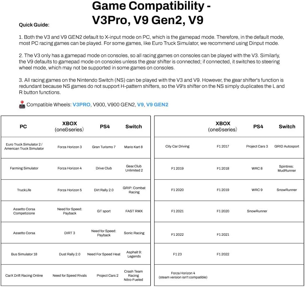 5 IN 1 RACING WHEEL : Compatible for Xbox one/Xbox Series X/S /PC/PS3/PS4/Nintendo Switch;