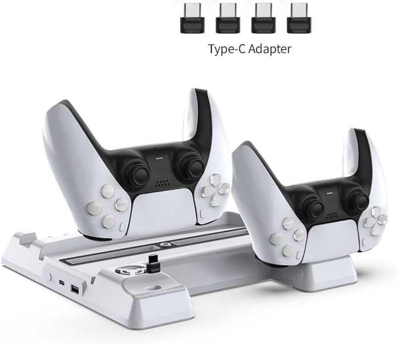 Vertical Stand for PS5 /PS5 Slim with Cooling Fan Cooling Stand Controller Charging Station for PS5/ PS5 Slim Digital Edition/Ultra HD Console with Game Disc Rack Storage TP5-3537B