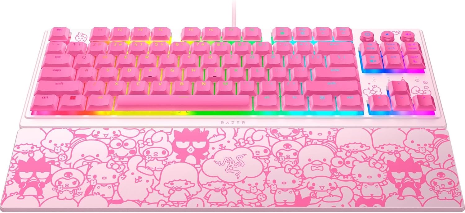 Razer Ornata V3 TKL Gaming Keyboard: Low-Profile Keys - Mecha-Membrane Switches - UV-Coated Keycaps - Backlit Media Keys - 8-Zone RGB Lighting - Magnetic Wrist Wrest - Hello Kitty & Friends Edition